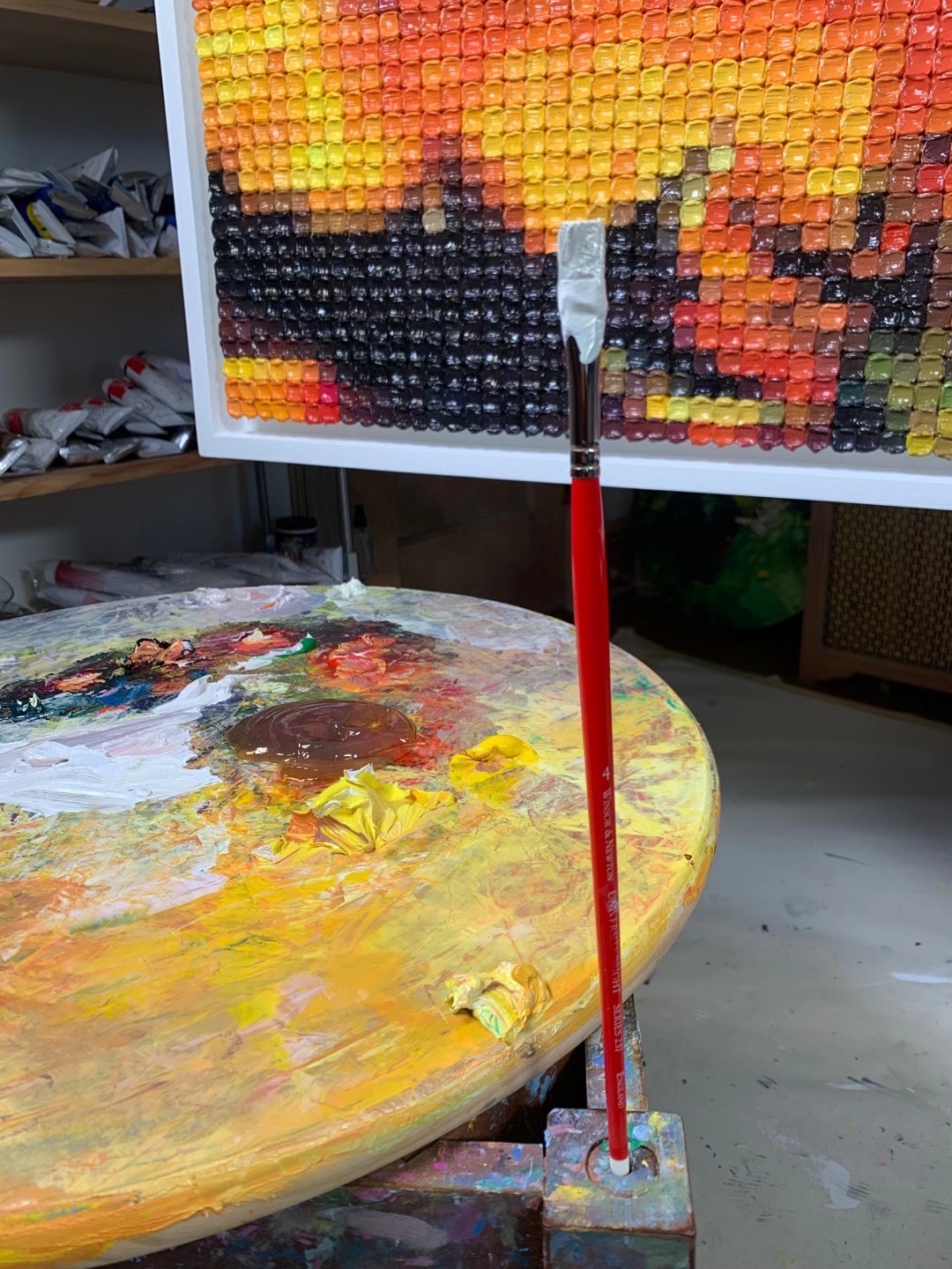 從2010年到2017年的整整七年時間,石村創作了一系列的石村塊油畫作品,從人民幣系列開始,然後是美金和港幣,再延伸到瑪麗蓮夢露系列,菩薩系列,以及京劇臉譜系列。不管是哪一種系列,石村都是採用同一種極簡的石村塊油畫方式,一筆一格循序漸進、細緻入微地繪畫出作品的內容,用同一種動作的重複累計,用時光流逝的日子疊加,創造出最終的作品。