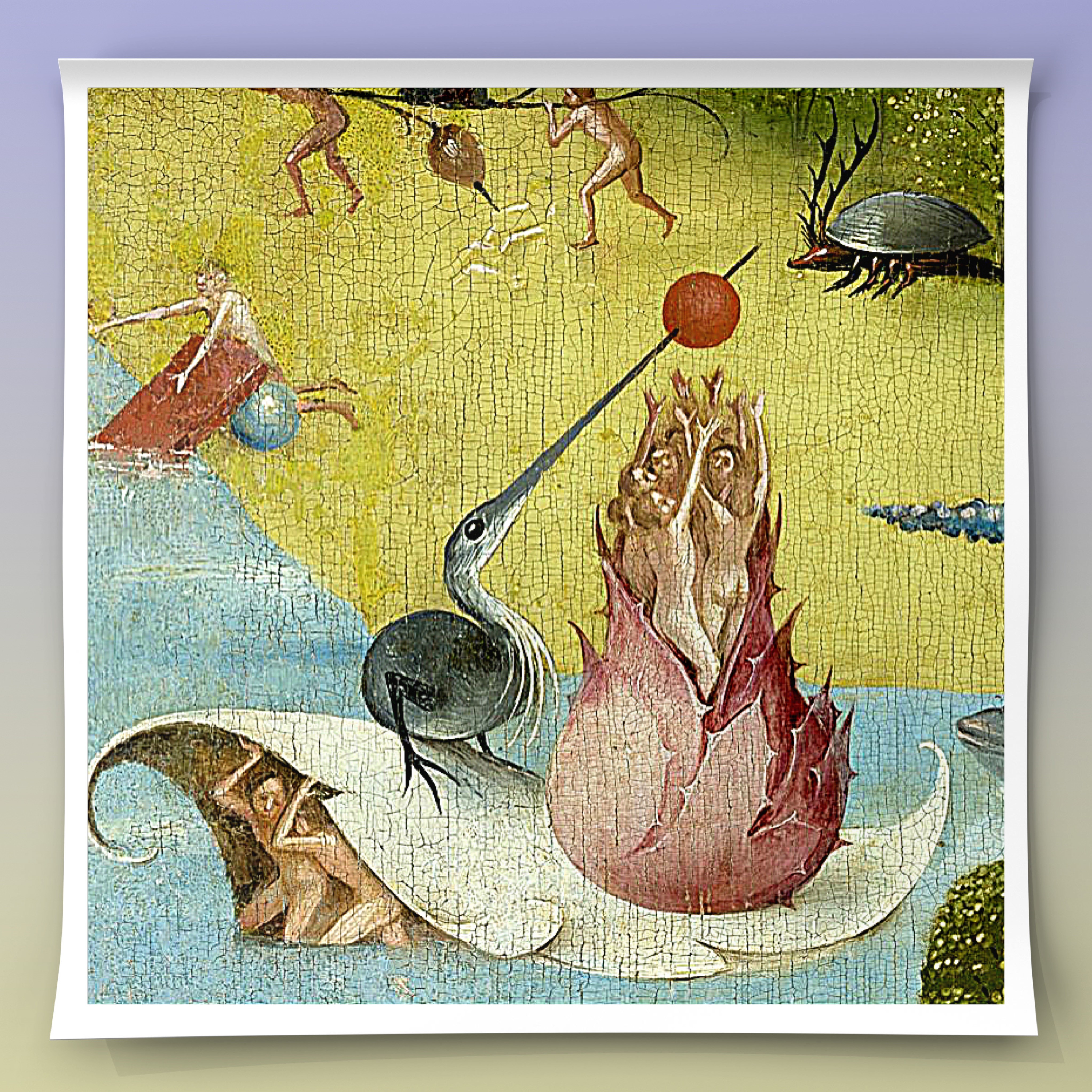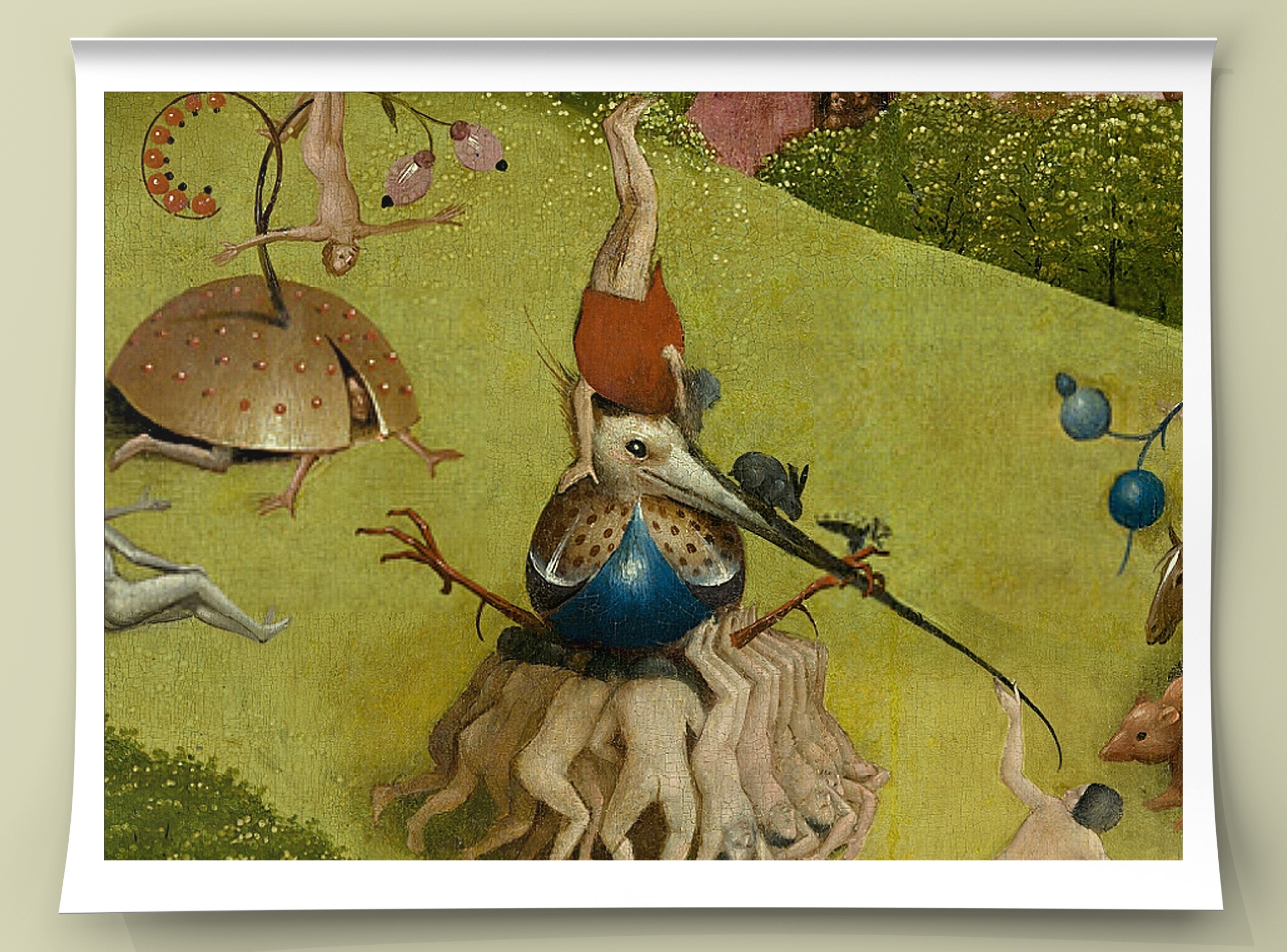 本刊《万物集》中的全部图片,选自荷兰十五世纪画家HIERONYMUS BOSCH的巨作<The Garden of Earthly Delights> ,译为《极乐园》《伊甸园》,BOSCH以他非凡的想象力,惟妙惟肖地刻画了诸世间的天地万物。他被誉为是20世纪超现实主义画派的启蒙者之一。感谢HIERONYMUS BOSCH博物馆和他的FANS们的无私共享。谨向这位杰出的画家HIERONYMUS BOSCH以崇高的敬意!