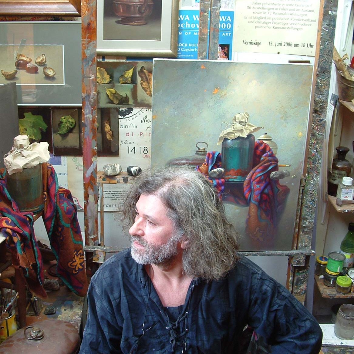 Edward Szutter was born in Poland in 1957 and is a member of The Association of Polish Artists and Designers. He boasts 35 Solo Painting Exhibitions and has won 15 Awards from National Exhibitions. He works in stained glass and still life paintings. His paintings are rich in glowing color and rustic textures. He breathes life into what could otherwise be rather mundane, creating eye catching and thought provoking works of art.