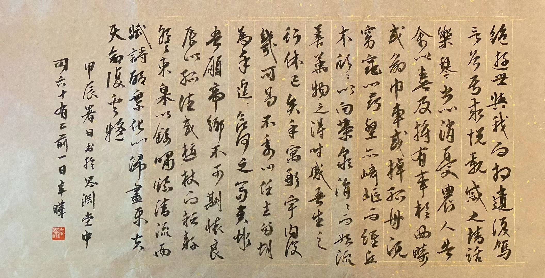 此外,我選了幾首詩,以及詩中的句子,用毛筆抄寫。從某個維度而言,以“書法”體現現代詩,提供了審美的新方式。我是在“新冠元年” 開始習字的,書法和中國古體詩詞之間的氣場相通而一貫,這樣的氣場能否在現代詩中自然自由,答案尚不肯定。現代詩落於紙墨,較之我書寫古體詩,似乎缺少某種內在通感。如果也是從風格論,也許超越文本的線條、節奏,是另一種潛力,但我尚不能致之。因此,這些書寫只能是一種稚澀的嘗試。